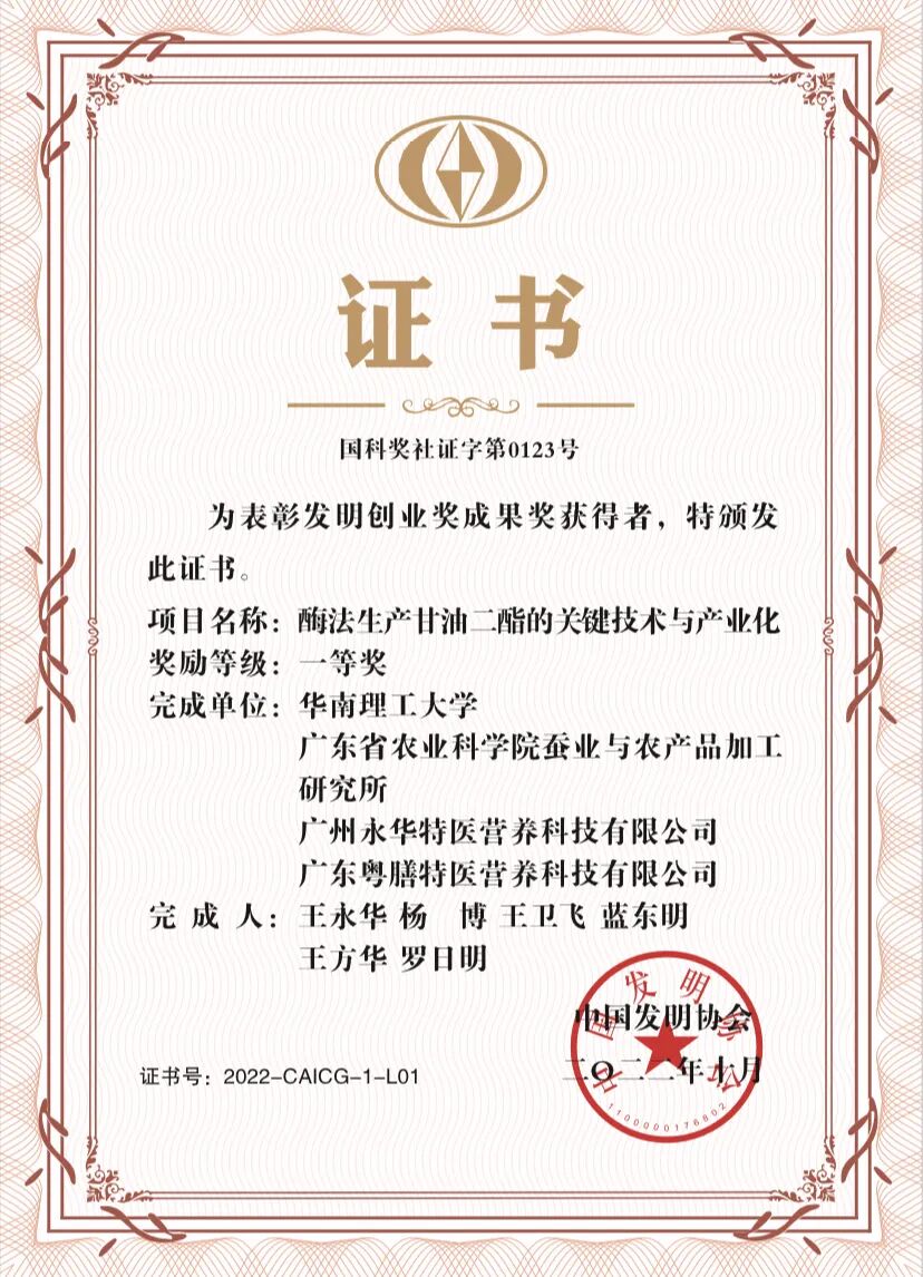 重磅!永华特医甘油二酯油生产关键酶制剂技术项目入选广东省海洋经济十大成果!